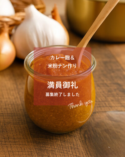 カレー麹&米粉ナン作りは、定員に達したため、募集を終了しました。