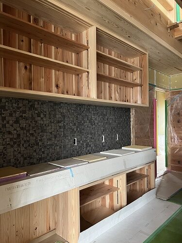 キッチン、収納部分が出来上がってきました。