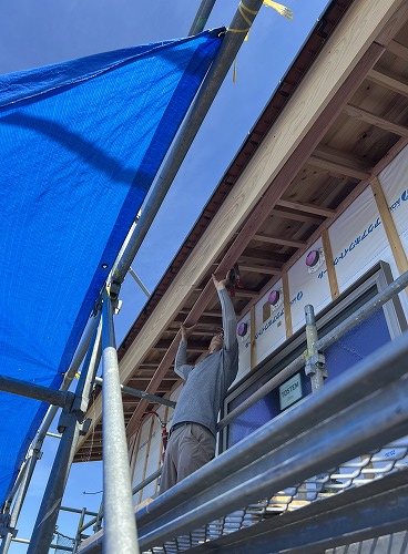 こちらでは軒天(のきてん)の作業中。