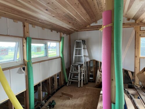 天井、床、壁とお家丸ごと施工するため、ものすごい作業量。